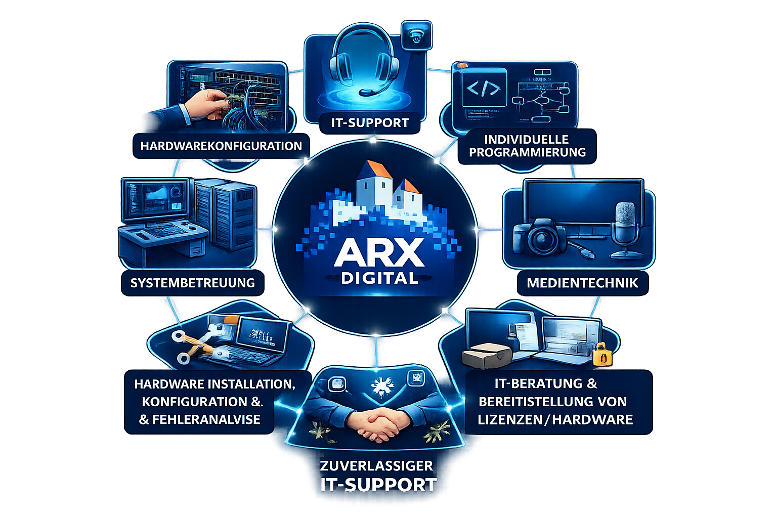 ARX Digital unterstützt Unternehmen in Burghausen und Umgebung mit kompetentem IT-Support im täglichen Geschäftsbetrieb,